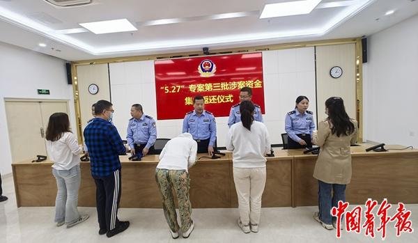 今年4月,南安市公安局举行“5·27”专案第三批涉案资金集中返还仪式。中青报·中青网记者 何春中/摄