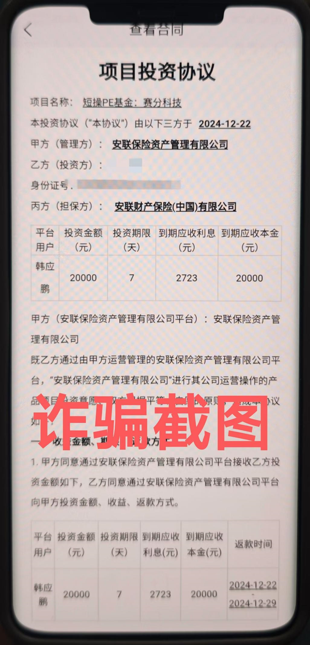 与此同时,群中经常有人发布充值及收益的截图,看到别人盈利十分可观,于是王女士也陆续开始充值,充值后在平台中购买不同期限的理财产品,还要签订所谓的“项目投资协议”,看似非常正规。